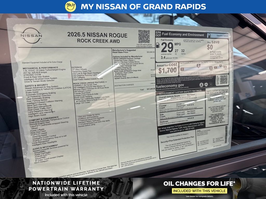 2026 Nissan Rogue Rock Creek AWD. 1.5L DOHC 27/32 City/Highway MPG Priced below KBB Fair Purchase Price!