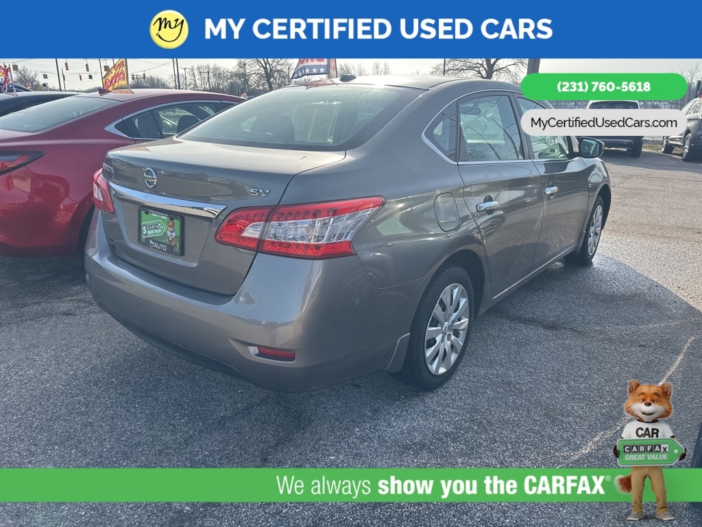 ***2015 NISSAN SENTRA SV***, *FULLY SERVICED*, *LOCAL TRADE*, *SUPER BUY*, *VERY CLEAN*, *REARVIEW CAMERA* *BLUETOOTH* *CLOTH INTERIOR* Fully automatic headlights. MY Certified Used Cars of Muskegon is your #1 choice in Michigan to get the BEST PRICE on used vehicles and BEST value for your trade. The MY Certified Used Cars team is ready to provide you with a world-class experience, ensuring that you find the perfect vehicle that fits all your needs. Every vehicle has been through a full safety inspection completed by certified technicians and fully detailed. We sell many makes and models, Pre-Owned Vehicles with years from 2025-2024-2023-2022-2021-2020-2019-2018-2017-2016-2015-2014-2013-2012-2011-2010-2009-2008-2007 and all makes Audi, BMW, Chevrolet, Toyota, Volkswagen, Kia, Hyundai, Mercedes, Dodge, Chrysler, Jeep, Ram, Lincoln, Honda, Subaru, and many models like Bronco, Bronco Sport, Edge, Escapes, Expedition, Explorer, Fusions, Focus, Flex, F-150 Series, F-250, F-350, Super Duty Diesel Trucks, Maverick, Mustang MACH-E, Mustang, Ranger, Transit, Wrangler, Grand Cherokee, Grand Cherokee L, Wagoneer, Gladiator, Grand Caravan, RAM, RAM HEMI, and more. Take advantage of our VIP experience by calling 231-760-5618 to schedule a test drive. Read our customer reviews at www.mycertifiedusedcars.com/testimonials or view our entire selection of preowned vehicles at www.mycertifiedusedcars.com, or stop by today, located at 3692 Airline Rd. Muskegon, MI 49444. Titanium 2015 Nissan Sentra SV FWD CVT with Xtronic 1.8L 4-Cylinder DOHC 16V Clean CARFAX.