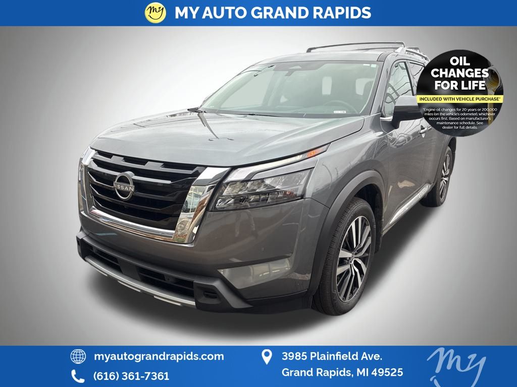 Recent Arrival! Gun Metallic 2025 Nissan Pathfinder Platinum 3.5L V6 DOHC 4WD Odometer is 1185 miles below market average!